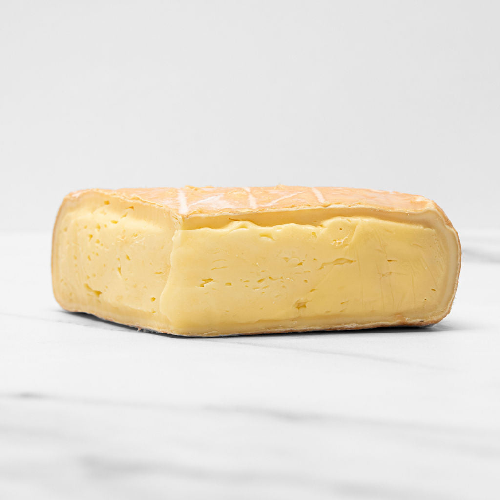 Abbaye de Tamié is a semi-soft, washed-rind cheese made by Trappist monks at the Abbaye de Tamié in the French Savoie region, a cheesemaking tradition dating back to the 12th century. It is made from unpasteurized cow's milk and has a creamy, soft interior with a nutty, sometimes pungent flavor that intensifies with age. Its distinctive appearance is characterized by an orange rind, which develops from being regularly washed in brine during its aging process. It is considered a close relative of Reblochon due to its similar shape, size, and creamy taste, though its flavor is often considered more pronounced.