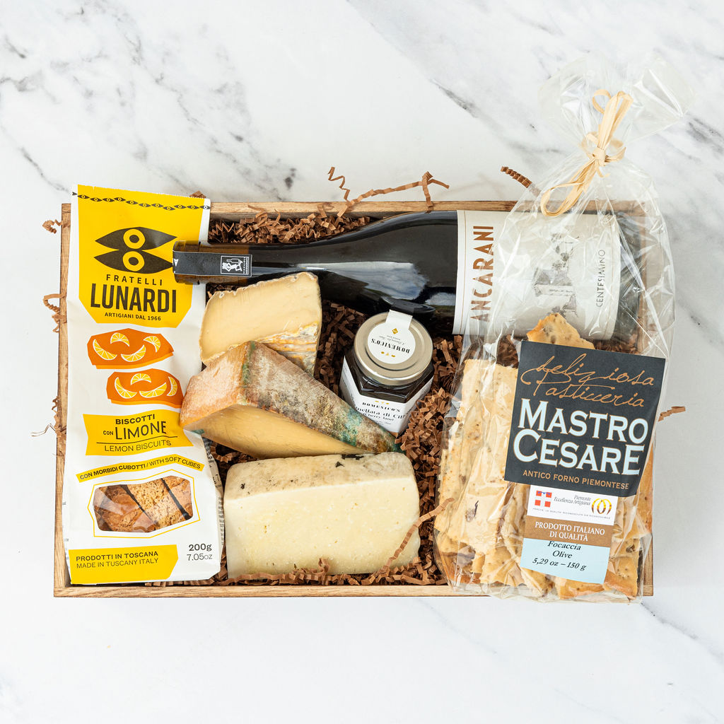 Ideal for a thoughtful gesture, a petite indulgence, or a charming host gift, this basket includes a few hand-selected cheeses, a delightful sweet treat, beautifully wrapped and ready to share (or savor all to yourself).
