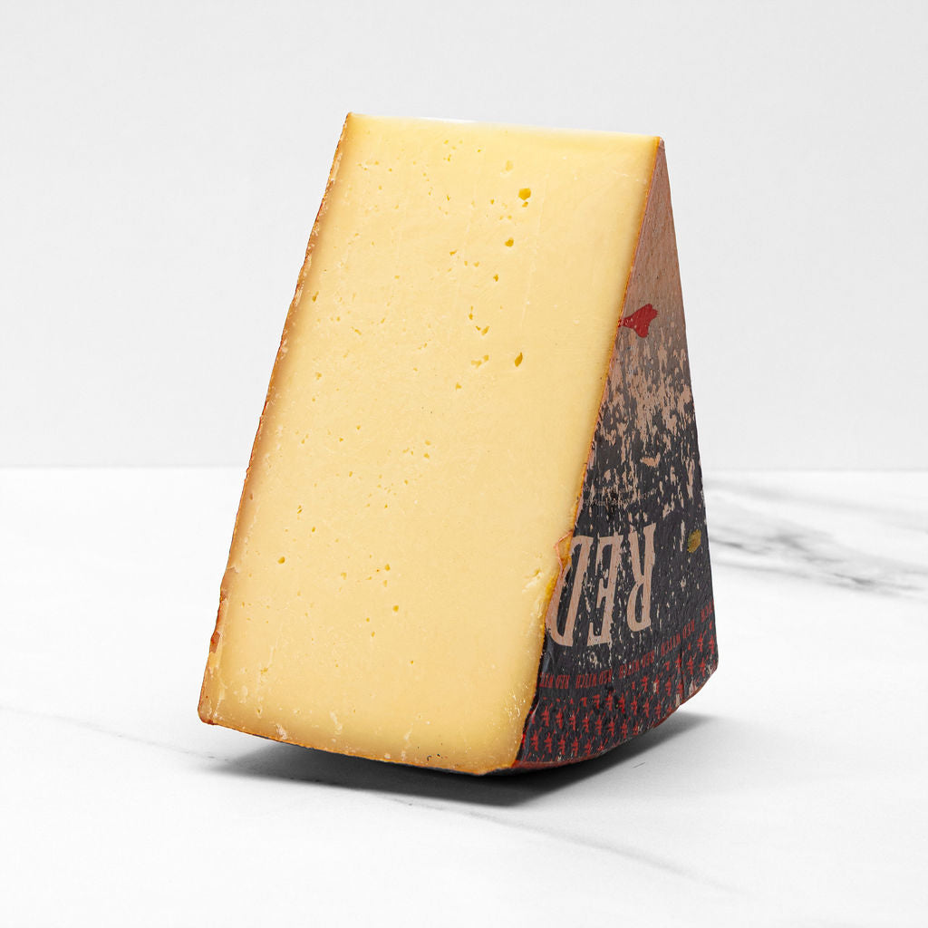 Red Witch is a semi-hard Swiss cheese made from raw cow's milk, known for its paprika-rubbed rind that gives it its red color and name. It has a creamy, buttery, and nutty flavor with a pleasant, slightly funky, pungent taste, and is often described as a great snacking cheese. It's a semi-hard, firm, and creamy cheese aged for about 5 months and pairs well with rustic sourdough bread, spicy salami, and various alcoholic beverages like imperial stouts, porters, pumpkin ales, or Alsatian wines.