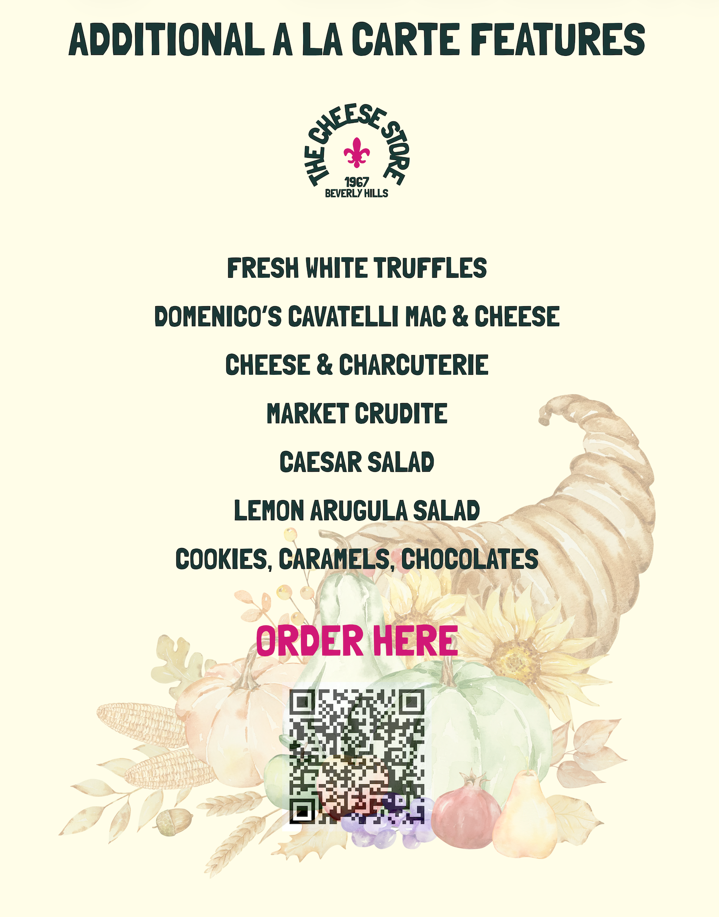 All dishes are prepared by The Cheese Store of Beverly Hills culinary team and ready to serve.